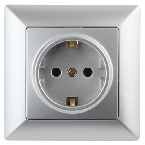 Розетка Intro Solo 4-202-03 с заземлением 2P+E Schuko, 16А-250В, IP20, СУ, алюминий