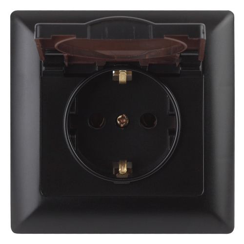 Розетка с крышкой со шторками серии Intro Solo скрытой установки цвет антрацит 4-203-05. Номинальные характеристики 16А 250В. Розетка выполнена из негорючего термопласта, укомплектована одноместной рамкой, оснащена винтовыми клеммами. Клеммы с двумя отверстиями позволяют соединять соседние розетки шлейфом. Установка в подрозетник производится как на монтажные лапки, так и на винты. Для установки 2-х и более устройств в несколько подрозетников в ряд дополнительно используются многоместные рамки: 2-х постовая - 4-502-хх, 3-х постовая 4-503-хх, 4-х постовая - 4-504-хх (где хх - цветовой код: 01 - белый, 02 - слоновая кость, 03 - алюминий, 04 - шампань, 05 - антрацит, 10 - венге, 11 - сосна).