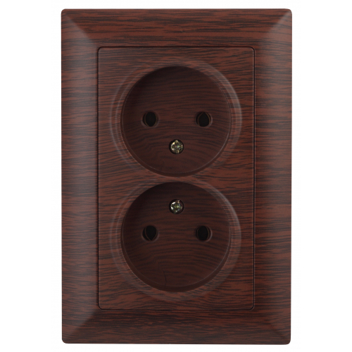 Розетка двойная 2-я серии Intro Solo скрытой установки цвет венге 4-204-10. Номинальные характеристики 16А 250В. Розетка выполнена из негорючего термопласта, укомплектована одноместной рамкой, оснащена винтовыми клеммами. Клеммы с двумя отверстиями позволяют соединять соседние розетки шлейфом. Установка в подрозетник производится как на монтажные лапки, так и на винты.