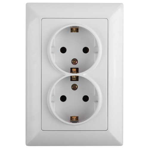 Розетка двойная 2-я серии Intro Solo скрытой установки цвет белый 4-205-01. Номинальные характеристики 16А 250В. Розетка выполнена из негорючего термопласта, укомплектована одноместной рамкой, оснащена винтовыми клеммами. Клеммы с двумя отверстиями позволяют соединять соседние розетки шлейфом. Установка в подрозетник производится как на монтажные лапки, так и на винты.