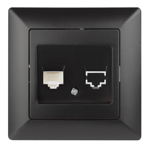 Розетка телефонная RJ11, серии Solo, скрытой установки 4-302-05 цвет антрацит. Выполнена из негорючего термопластика, укомплектована одноместной рамкой.