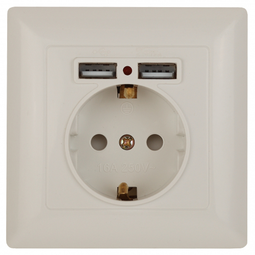 Розетка с USB со шторкой серии Intro Solo скрытой установки цвет слоновая кость 4-410-02 с заземлением. Номинальные характеристики 16А 250В/2,1А-5В . Розетка выполнена из негорючего термопласта, укомплектована одноместной рамкой, оснащена винтовыми клеммами. Клеммы с двумя отверстиями позволяют соединять соседние розетки шлейфом. Установка в подрозетник производится как на монтажные лапки, так и на винты.