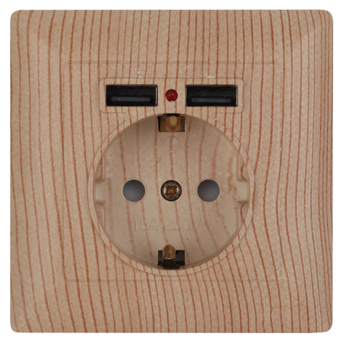 Розетка с USB со шторкой серии Intro Solo скрытой установки цвет сосна 4-410-11. Номинальные характеристики 16А 250В/2,1А-5В . Розетка выполнена из негорючего термопласта, укомплектована одноместной рамкой, оснащена винтовыми клеммами. Клеммы с двумя отверстиями позволяют соединять соседние розетки шлейфом. Установка в подрозетник производится как на монтажные лапки, так и на винты.