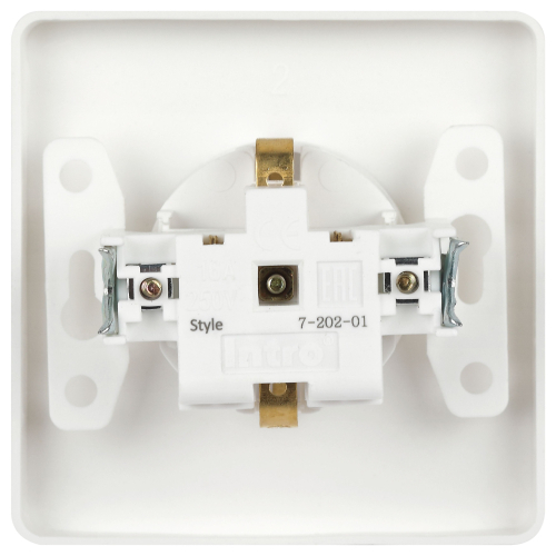 Розетка серии Intro ST скрытой установки цвет белый 7-202-01 с заземлением. Номинальные характеристики 16А 250В . Розетка выполнена из негорючего термопласта, укомплектована одноместной рамкой, оснащена винтовыми клеммами. Клеммы с двумя отверстиями позволяют соединять соседние розетки шлейфом. Установка в подрозетник производится как на монтажные лапки, так и на винты.
