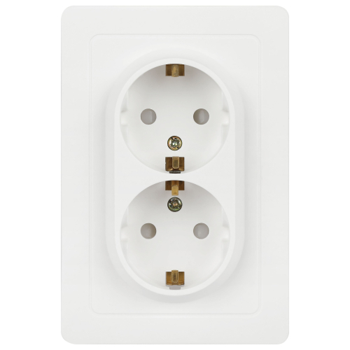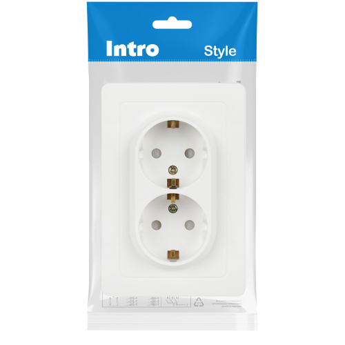 Розетка двойная с заземлением со шторками серии Intro ST скрытой установки цвет белый 7-208-01. Номинальные характеристики 16А 250В . Розетка выполнена из пластика, укомплектована одноместной рамкой, оснащена винтовыми клеммами. Клеммы с двумя отверстиями позволяют соединять соседние розетки шлейфом. Установка в подрозетник производится как на монтажные лапки, так и на винты.