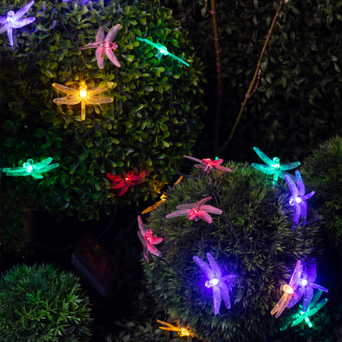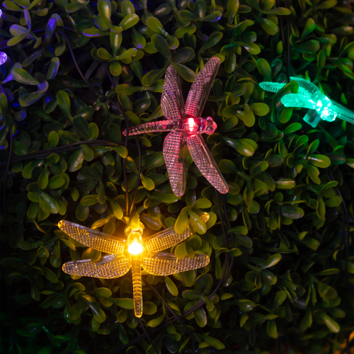 Уличная гирлянда ERASF22-16 Стрекоза 5.8 м от бренда ЭРА станет изящным украшением Вашего дачного участка! Этот светодиодный светильник внесет оригинальности и легкости в атмосферу сада - повесьте его на кустарник, осветите беседку или вход в дом. Состоит из 20 прозрачных фигурок в виде стрекоз, подсвеченных светодиодами с разноцветным свечением. Гирлянда работает на солнечной батарее - такой тип получения энергии является наиболее экологичным, энергоемким, а также бесшумным. Питание происходит во включенном режиме, днем, а с наступлением ночи гирлянда автоматически загорается и работает до 8 часов. 2 режима свечения - постоянный и мигающий - позволят создать праздничное настроение. Садовый светильник можно оставлять на улице в плохую погоду, благодаря высокой степени пыле- и влагозащиты IP44. Садовая гирлянда на солнечной батарее от компании ЭРА - идеальный вариант для декорирования площади сада.