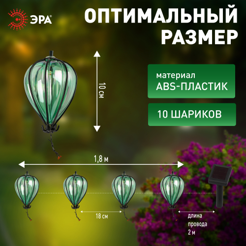 Садовая гирлянда Воздушные шарики на солнечной батарее 3,8 м (длина рабочей части 1,8 метров) 10 LED ЭРА ERASF23-21