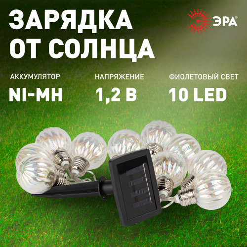 Садовая гирлянда ЭРА ERASF23-22 Радужные лампочки на солнечной батарее 3,8 м (длина рабочей части 1,8 метров) 10 LED