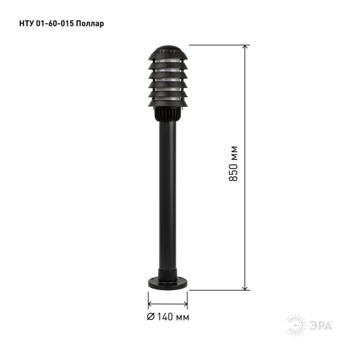 Уличный напольный светильник ЭРА под лампу с цоколем Е27 (60 Вт) - практичный и эстетичный вариант для оформления садово-парковых зон, прогулочных дорожек, придомовых территорий, фасадов.