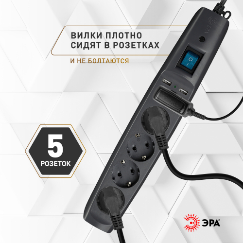 Сетевой фильтр ЭРА SFU-5es-2m-B отличается многофункциональностью, что делает его необходимым атрибутом современного дома. Сетевой фильтр имеет шнур длиной 2м, такой удлинитель оптимальный для использования в пределах одной комнаты. Сетевой фильтр ЭРА имеет 4 розетки классической круглой формы, узкое гнездо для зарядных устройств, 2 USB-порта с напряжением 2.1 А, что обеспечивает быструю зарядку мобильных устройств. Сетевой фильтр ЭРА имеет предохранитель, что защищает устройство от перегрузок, короткого замыкания. А также варистор, конденсатор и дроссель для защиты подключенных устройств от импульсных и высокочастотных помех. Сетевые фильтры ЭРА разрабатываются собственным техническим бюро, проходит проверку на всех этапах производства, что обеспечивает высокое качество продукта.