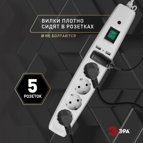 Сетевой фильтр ЭРА SFU-5es-2m-W незаменимый атрибут жителя современного мегаполиса. Фильтр объединяет несколько функций, что особенно удобно в квартире. Сетевой фильтр используется как удлинитель (длина провода составляет 2м). Сетевой фильтр имеет 5 розеток: 4 стандартных гнезда и одно для зарядных устройств. На корпусе также расположены 2 USB-порта напряжением 2.1 А, что дает возможность быстрой зарядки мобильных устройств. Сетевой фильтр имеет надежную защиту, заземление и выключатель. Устройство предохраняет от перегрузки сети, короткого замыкания, импульсных и высокочастотных помех. Для дополнительного удобства на вилке расположено кольцо, позволяющее легко выдернуть удлинитель из розетки. Современный дизайн сетевого фильтра будет выгодно смотреться практически в любом интерьере. Сетевые фильтры ЭРА разрабатывается собственным техническим бюро, проходит проверку на всех этапах производства, что обеспечивает высокое качество продукта.
