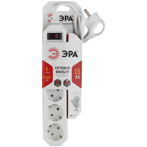 Сетевой фильтр ЭРА USF-5es-1.5m-W обладает несомненными достоинствами, позволяющими ему стать необходимым атрибутом современного дома. Прочный корпус универсального цвета имеет 5 розеток, каждая из которых имеет заземление. Длина его провода составляет 1.5 м, что особенно удобно в пределах одной комнаты. Функционируя как удлинитель, сетевой фильтр ЭРА исключит большое количество лишних проводов. Он защищает от перегрузки сети, короткого замыкания, фильтрует импульсные помехи. При этом мощность фильтра составляет 2200 Вт, что обеспечивает безопасную и стабильную работу техники. Современная квартира уже не представляется без большого количества приборов, и именно сетевой фильтр защитит их в любой ситуации. Сетевые фильтры разрабатываются собственным техническим бюро, проходят проверку на всех этапах производства, что обеспечивает высокое качество продукта.