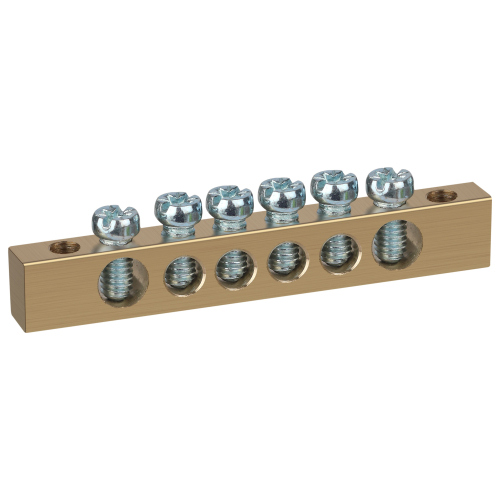 Шины латунные PEN "земля-ноль" применяются для электрического и механического соединения нулевых, защитных и фазных проводников в электрических щитах и распределительных устройствах. Изделия выполняются из латуни соответствующего сечения с отверстиями обладающими винтовыми зажимами для подключения проводников.