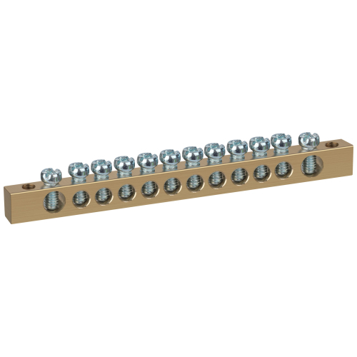 Шины латунные PEN "земля-ноль" применяются для электрического и механического соединения нулевых, защитных и фазных проводников в электрических щитах и распределительных устройствах. Изделия выполняются из латуни соответствующего сечения с отверстиями обладающими винтовыми зажимами для подключения проводников.
