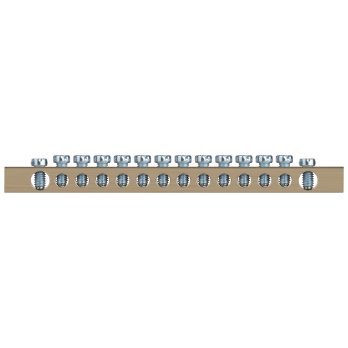 Шины латунные PEN "земля-ноль" применяются для электрического и механического соединения нулевых, защитных и фазных проводников в электрических щитах и распределительных устройствах. Изделия выполняются из латуни соответствующего сечения с отверстиями обладающими винтовыми зажимами для подключения проводников.