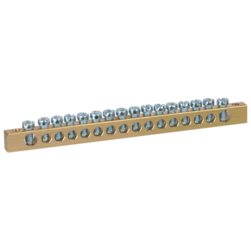 Шины латунные PEN "земля-ноль" применяются для электрического и механического соединения нулевых, защитных и фазных проводников в электрических щитах и распределительных устройствах. Изделия выполняются из латуни соответствующего сечения с отверстиями обладающими винтовыми зажимами для подключения проводников.