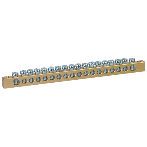 Шины латунные PEN "земля-ноль" применяются для электрического и механического соединения нулевых, защитных и фазных проводников в электрических щитах и распределительных устройствах. Изделия выполняются из латуни соответствующего сечения с отверстиями обладающими винтовыми зажимами для подключения проводников.