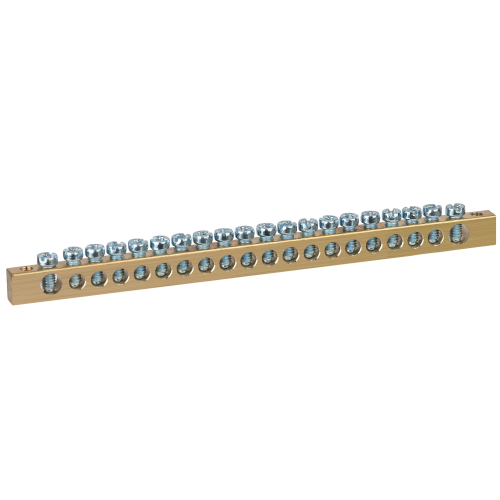 Шины латунные PEN "земля-ноль" применяются для электрического и механического соединения нулевых, защитных и фазных проводников в электрических щитах и распределительных устройствах. Изделия выполняются из латуни соответствующего сечения с отверстиями обладающими винтовыми зажимами для подключения проводников.