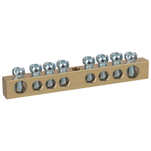 Шины латунные PEN "земля-ноль" применяются для электрического и механического соединения нулевых, защитных и фазных проводников в электрических щитах и распределительных устройствах. Изделия выполняются из латуни соответствующего сечения с отверстиями обладающими винтовыми зажимами для подключения проводников.