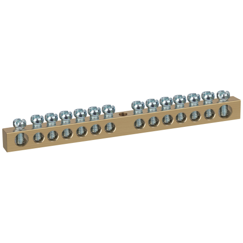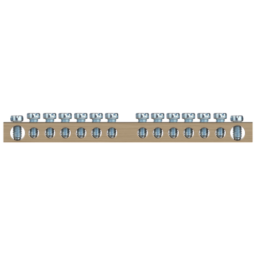 Шины латунные PEN "земля-ноль" применяются для электрического и механического соединения нулевых, защитных и фазных проводников в электрических щитах и распределительных устройствах. Изделия выполняются из латуни соответствующего сечения с отверстиями обладающими винтовыми зажимами для подключения проводников.