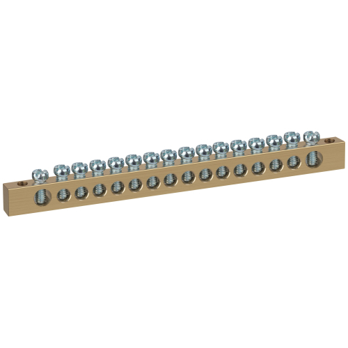 Шины латунные PEN "земля-ноль" применяются для электрического и механического соединения нулевых, защитных и фазных проводников в электрических щитах и распределительных устройствах. Изделия выполняются из латуни соответствующего сечения с отверстиями обладающими винтовыми зажимами для подключения проводников.
