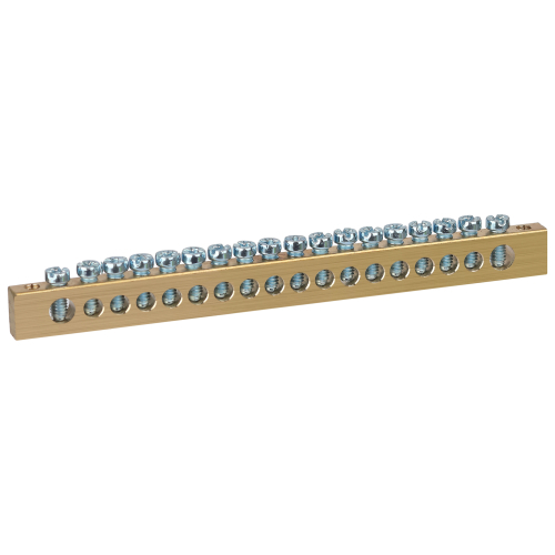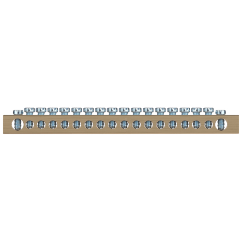 Шины латунные PEN "земля-ноль" применяются для электрического и механического соединения нулевых, защитных и фазных проводников в электрических щитах и распределительных устройствах. Изделия выполняются из латуни соответствующего сечения с отверстиями обладающими винтовыми зажимами для подключения проводников.
