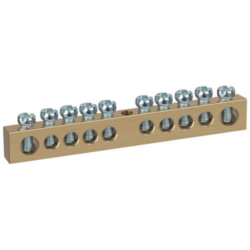 Шины латунные PEN "земля-ноль" применяются для электрического и механического соединения нулевых, защитных и фазных проводников в электрических щитах и распределительных устройствах. Изделия выполняются из латуни соответствующего сечения с отверстиями обладающими винтовыми зажимами для подключения проводников.