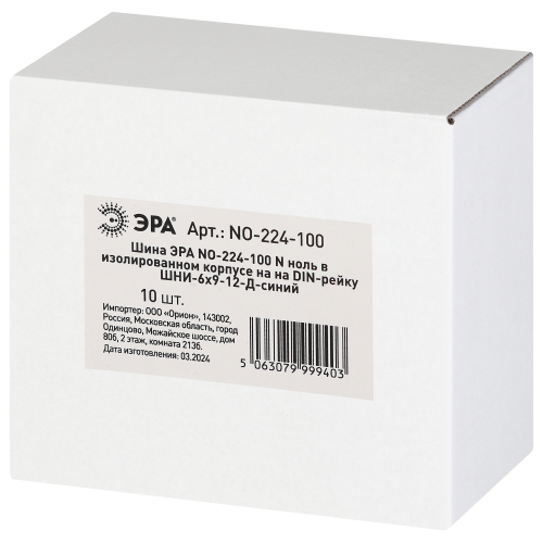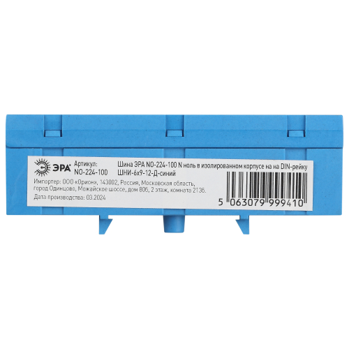 Изделие выполнено из латунной шины сечением 6×9 мм установленной в пластиковый изолятор синего цвета.