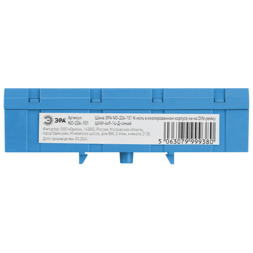 Изделие выполнено из латунной шины сечением 6×9 мм установленной в пластиковый изолятор синего цвета.
