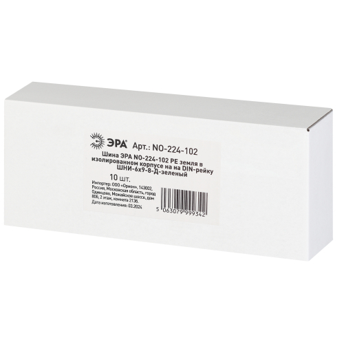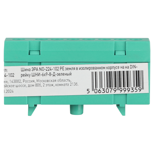 Изделие выполнено из латунной шины сечением 6×9 мм установленной в пластиковый изолятор зелёного цвета.