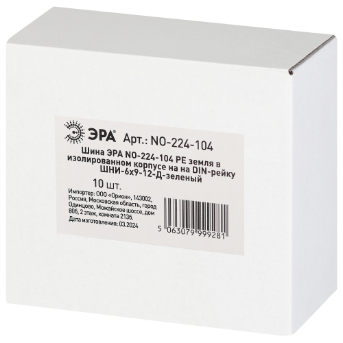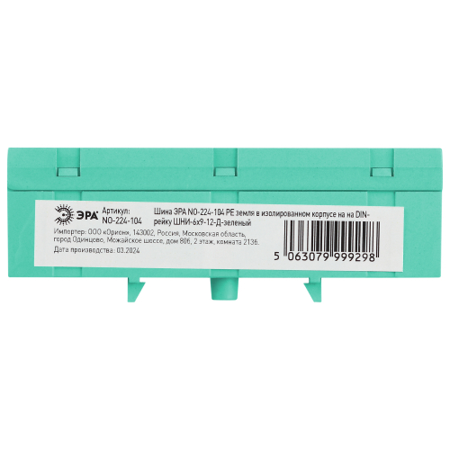 Изделие выполнено из латунной шины сечением 6×9 мм установленной в пластиковый изолятор зелёного цвета.