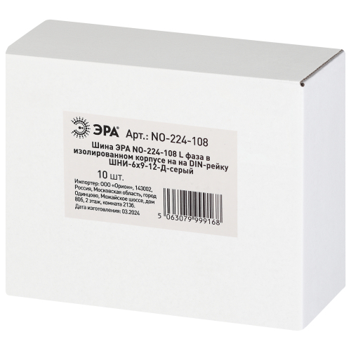 Изделие выполнено из латунной шины сечением 6×9 мм установленной в пластиковый изолятор серого цвета.