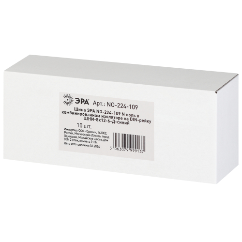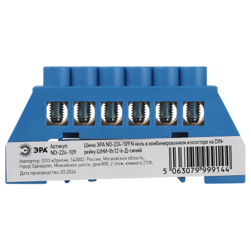 Изделие выполнено из латунной шины сечением 8×12 мм установленной в пластиковый комбинированный изолятор синего цвета.
