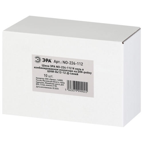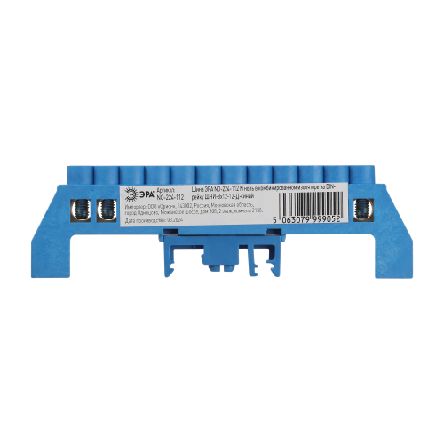 Изделие выполнено из латунной шины сечением 8×12 мм установленной в пластиковый комбинированный изолятор синего цвета.
