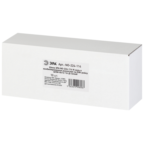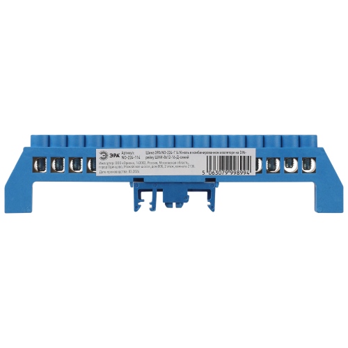 Изделие выполнено из латунной шины сечением 8×12 мм установленной в пластиковый комбинированный изолятор синего цвета.