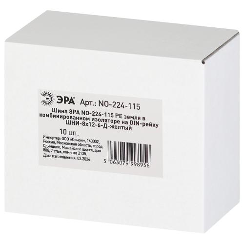 Изделие выполнено из латунной шины сечением 8×12 мм установленной в пластиковый комбинированный изолятор жёлтого цвета.