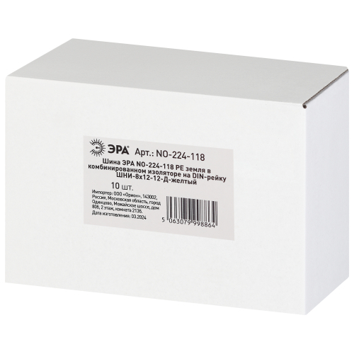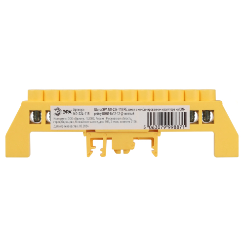 Изделие выполнено из латунной шины сечением 8×12 мм установленной в пластиковый комбинированный изолятор жёлтого цвета.