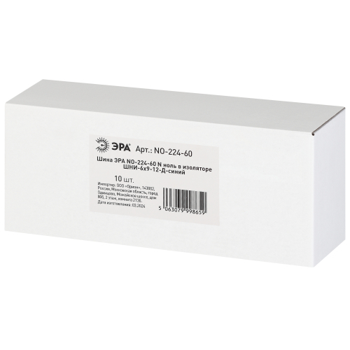 Изделие выполнено из латунной шины сечением 6×9 мм установленной в пластиковый изолятор синего цвета.