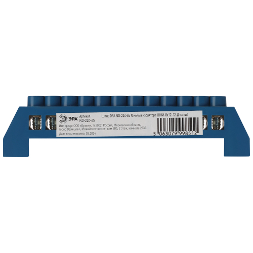 Изделие выполнено из латунной шины сечением 8×12 мм установленной в пластиковый изолятор синего цвета.