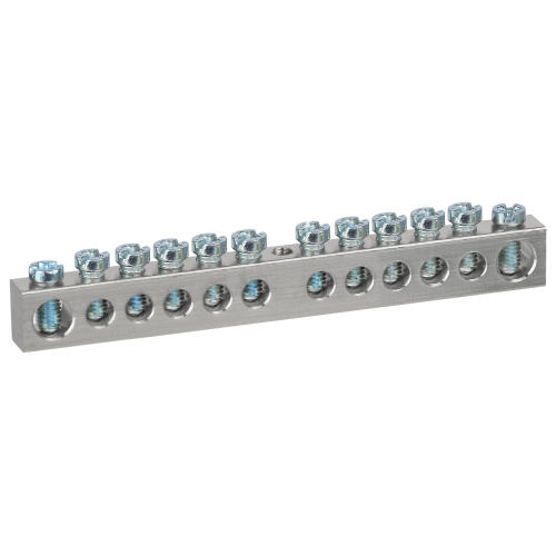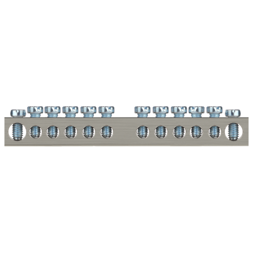 Изделие выполнено из латунной шины сечением 6×9 мм с никелированным покрытием для высокой коррозионной стойкости материала и позволяет одновременно подключать проводники из меди и алюминиевого сплава серии 8000.