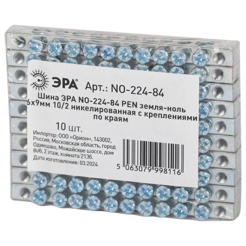 Изделие выполнено из латунной шины сечением 6×9 мм с никелированным покрытием для высокой коррозионной стойкости материала и позволяет одновременно подключать проводники из меди и алюминиевого сплава серии 8000.