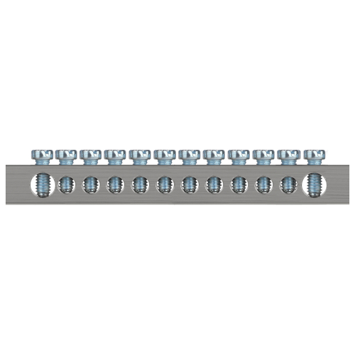Изделие выполнено из латунной шины сечением 6×9 мм с никелированным покрытием для высокой коррозионной стойкости материала и позволяет одновременно подключать проводники из меди и алюминиевого сплава серии 8000.