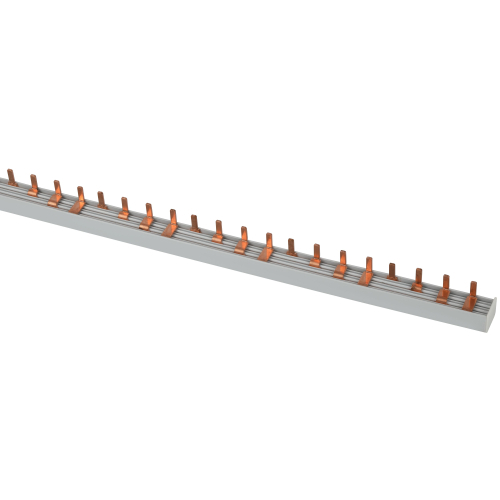 Шины соединительные "Гребёнки" представляют собой токоведущие пластины, выполненные из меди, закрепленные в корпусе из диэлектрического материала. Применяются при внутрищитовом монтаже для подачи питания определённых полюсов и фаз к модульным аппаратам защиты сети (автоматические выключатели, диф. автоматы, ВДТ/УЗО, выключатели нагрузки) путём их параллельного соединения.
