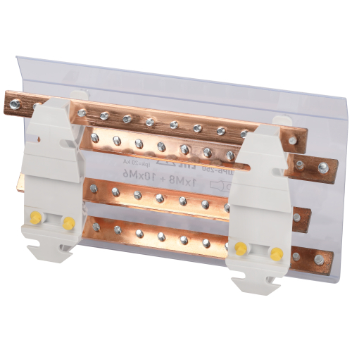 Шинные распределительные блоки ШРБ представляют собой набор клеммных зажимов в виде токоведущих шин в компактном корпусе с защитным экраном и предназначены для создания упорядоченных систем в распределительных шкафах и структурированного подключения подходящих и отводных линий. Изделие имеет удобную сборно-разборную конструкцию, которая в значительной степени облегчает процесс монтажа и подключения и не требуют предварительной подготовки.