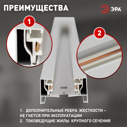 Однофазный трековый шинопровод ЭРА с плоскими токоведущими жилами.