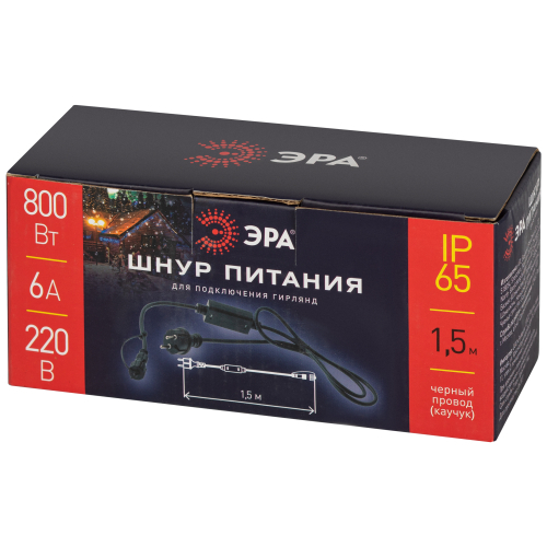 Шнур питания ЭРА ERAPS-K800 - мощный 800-ваттный 6-амперный комплект для подключения профессиональных гирлянд. Изготовлен из мягкого прочного каучука - надежен, морозостоек, выдерживает перепады температур, осадки, надедь. Монтаж профессионального новогоднего освещения ЭРА, соединение в единую линию и демонтаж безопасны даже для любителя. А профессиональные светотехники и дизайнеры с помощью таких уличных гирлянд от ЭРА могут легко создавать масштабные креативные LED-инсталляции. Профессиональный каучуковый шнур питания для уличных гирлянд позволяет воплощать в жизнь масштабные проекты новогодней иллюминации фасадов зданий, наружных витрин, улиц, парков, коттеджей.