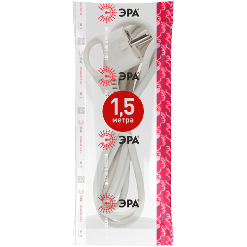 Шнур питания с вилкой U-3x1,5-1,5m-W с заземлением, провод ПВС с сечением 3х1,5 мм2, длина 1,5 м, цвет - белый. Провод шнура питания состоит из скрученных жил с надежной ПВХ оболочкой. На конце шнура имеется штепсельная вилка. Изделие предназначено для комплектации или ремонта электрических бытовых приборов.