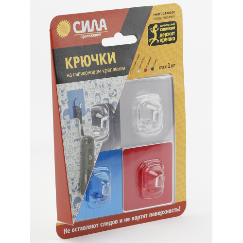 Эффективные крючки на силиконовом креплении СИЛА SH5-R4GMIX-24. Набор из 4 самоклеящихся крючков разных цветов: белый, синий, красный, прозрачный. Форма основания - квадрат, размер - 5х5 см. Удачный способ избежать сверления стен или мебели. Инновационные крючки на композитной силиконовой основе надежно удерживают предметы весом до 1 кг. Доступно многоразовое переклеивание с сохранением функций. Не портят поверхность и не оставляют следов. Идеальны для кафеля, пластика, стекла, ламинированных поверхностей. Помогут организовать и украсить пространство - быстро и без проблем. С успехом применяются во влажных помещениях - ванные комнаты, туалеты, кухни. Хорошее решение для подсобок, кладовых, гардеробных, прихожих. Разноцветные крючки-держатели нравятся детям и станут помощниками в приобщении ребенка к порядку. Хороший вариант для ярких интерьеров или в качестве цветовых акцентов в интерьере сдержанных оттенков.
