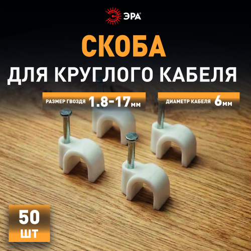 Скобы крепёжные пластиковые ЭРА предназначены для быстрого и надежного крепления круглых и плоских кабелей.