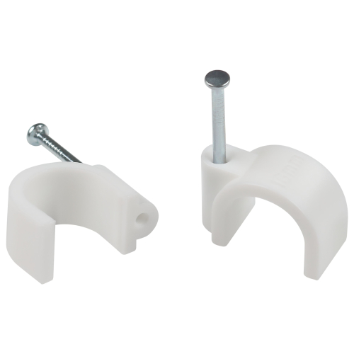 В ассортименте 2 типа изделий: для круглого кабеля и для плоского кабеля. Поставляется в комплекте с уже вставленным гвоздем.